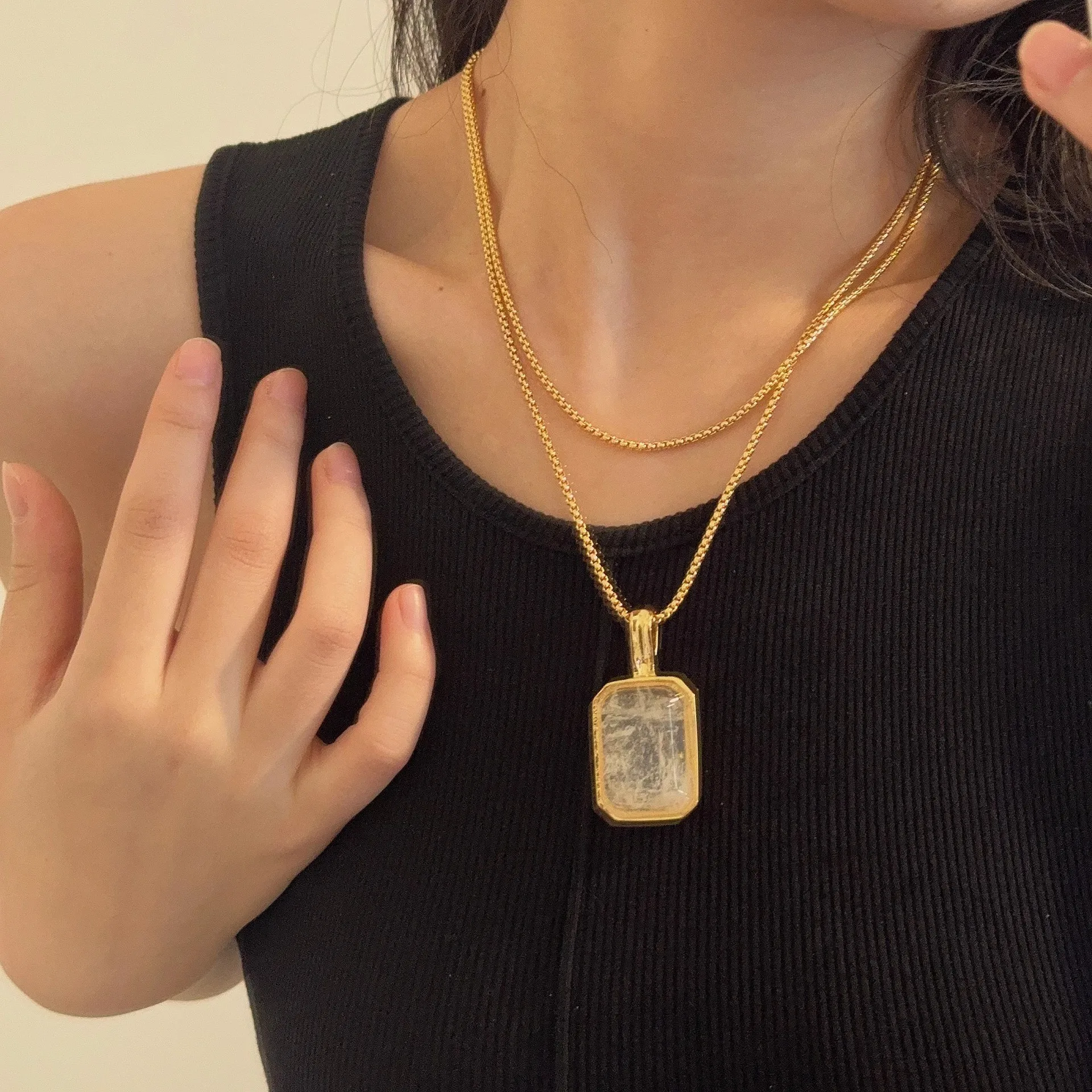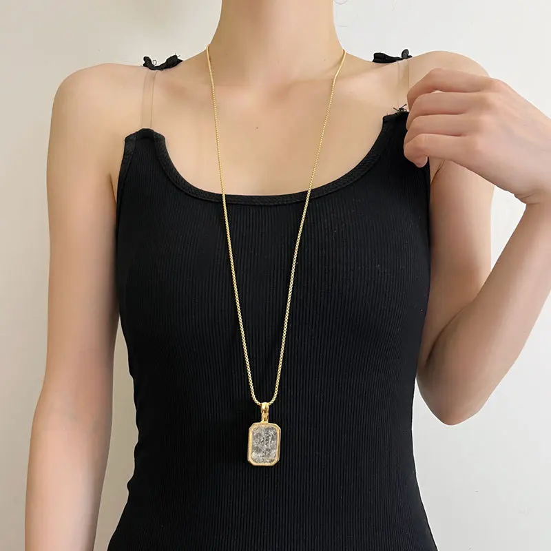 Luxury Large Square Crystal Necklace Cooper Alloy for Women Jewelry Trendy Vintage Charm Accessories Sweater Chain
